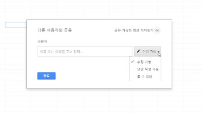 그리고 공유옵션에서 수정가능, 댓글작성가능, 볼 수 있음 기능이 있는데 수정가능은 수정할 수 있는 권한으로서 문서 소유자인 나 외에 문서를 편집할 수 있는 권한이므로 함께 문서를 작성해야 하는 경우에 이 것을 선택하면 됩니다.